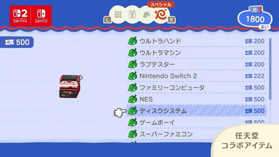 リゾートホテルの運営を進め、名物の提供や客室コーディネート、VIPルームの作成などを一定数こなしてホテルの評価を高めていくと、後日ゲコに話しかけた際に「みやげや」に任天堂コラボ家具が追加され、ホテルクーポンと交換できるようになります。