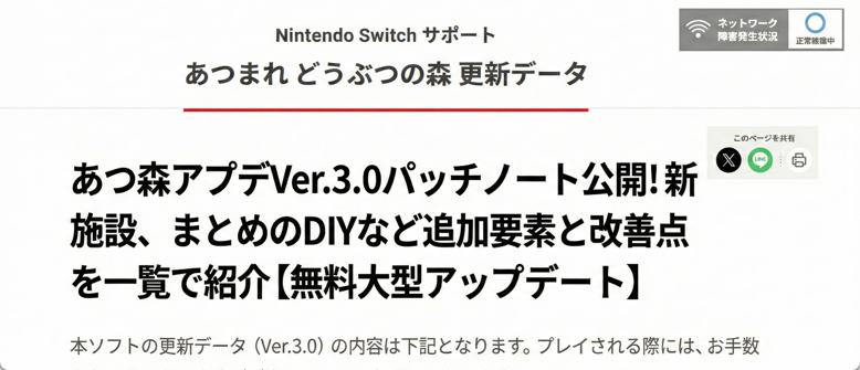 あつまれ どうぶつの森 更新データ|Nintendo Switch サポート情報|任天堂サポート